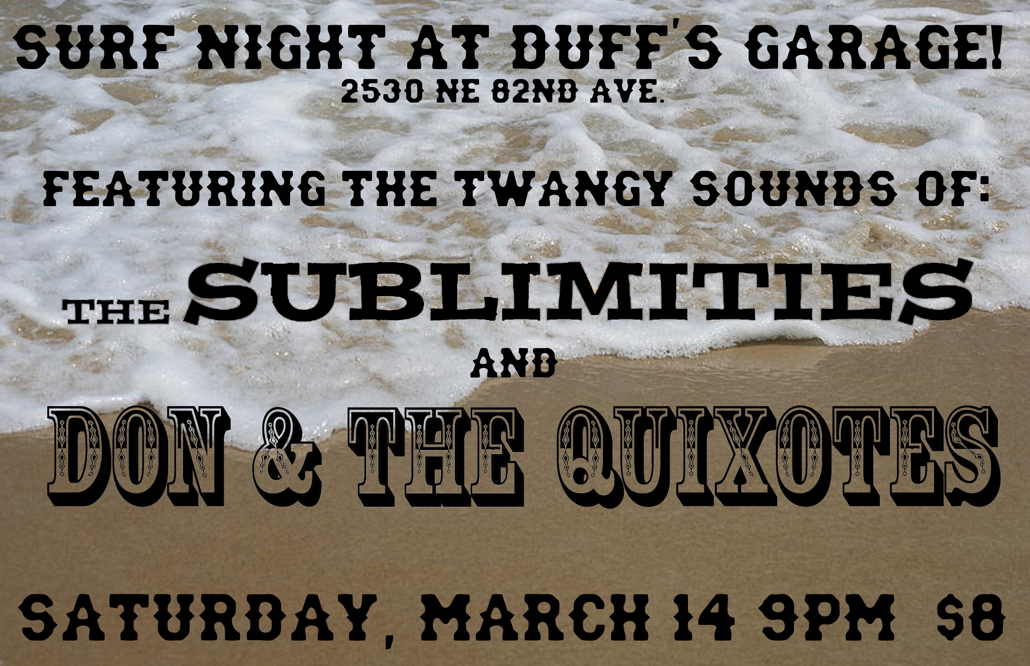 Ring in 2015 with in style with Don and The Quixote boys! You don’t want to miss this non-stop thrill-ride surf-rock variety show complete with ball-drop countdown, champagne at midnight, a touching farewell to Michael Wright, special guests and of course some surprises.